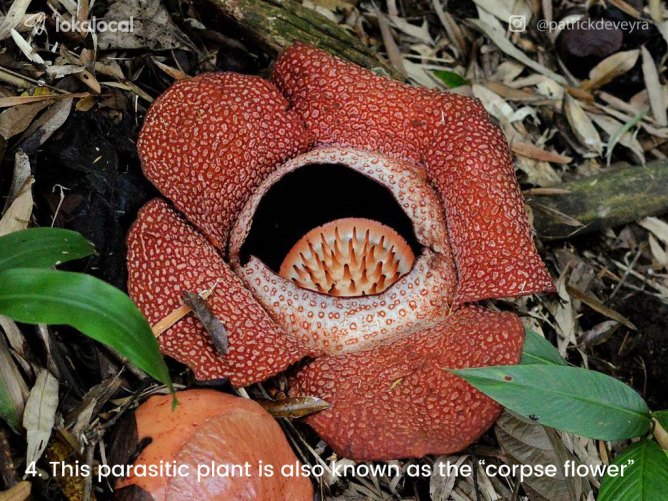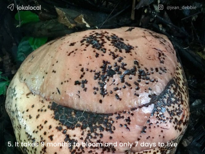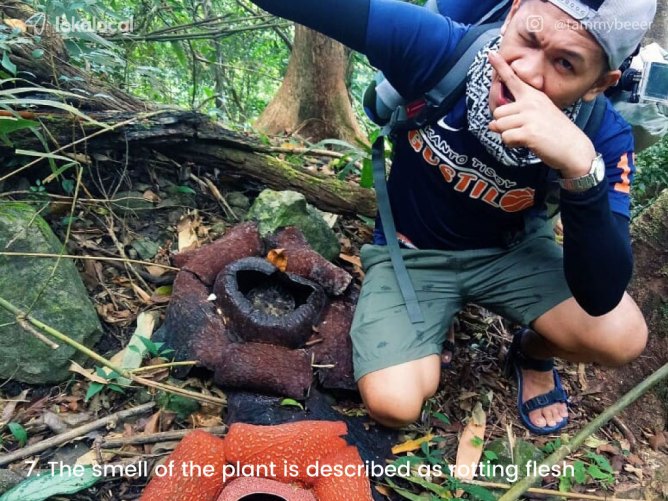 This happens at the end of its short cycle, when it is ready to reproduce. The putrid smell lures flies that help to carry the pollen and transfer it to nearby Rafflesia plants, if any.