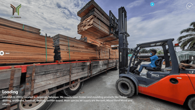 We created a virtual tour spanning 9 key areas of interest within Ching Hin’s factory in Jenjarom, Selangor. The navigation menu goes through the end-to-end manufacturing process through various 360 panoramas, from the sawmill to the kilning facility, quality control department, loading bay and storage unit.