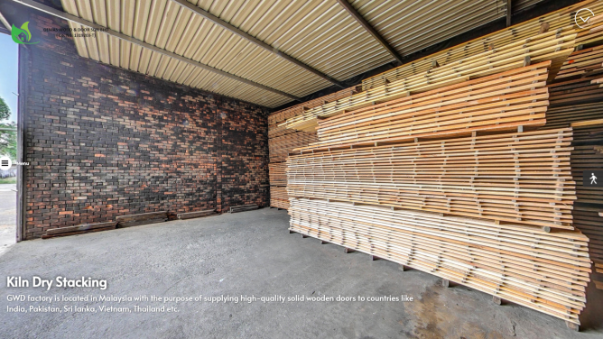 The factory virtual tour for Gemas Wood and Door showcases selected areas on the premise. Given their role as a supplier for solid wooden doors, we focused on their overview, production area, kiln dry stacking area and sawmill. Each section includes descriptions on their company values.