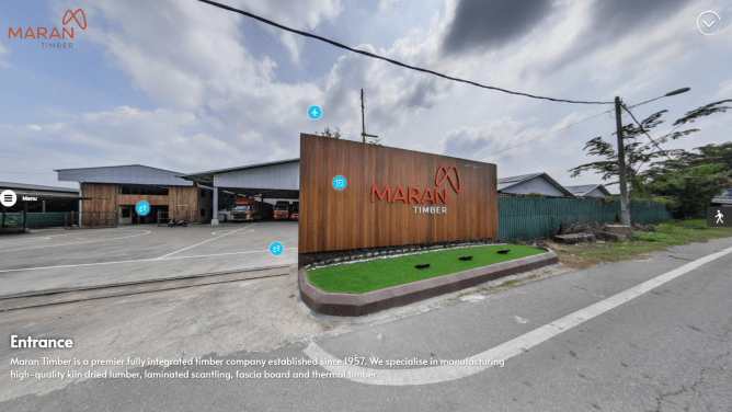 Maran Timber is an integrated timber manufacturing company with operations in Pahang. Their virtual tour covers key areas in the factory, such as its kilning facilities and integrated timber processing facilities. As they are the first sawmill in Malaysia with timber tracking certificates for exporting green timber, the tour also includes a closer look into their finished timber products, which are shipped to clients around the world. A video at the entrance provides an immersive walkthrough of the factory, while informative pop-ups provide an insight into their precision machinery and processes.