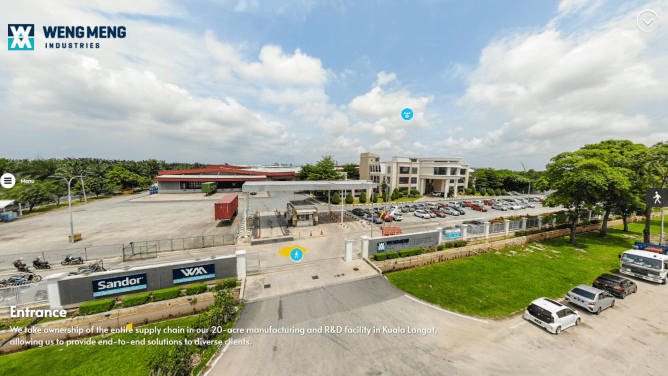 Weng Meng Industries is a major producer and distributor of doors and steel cable reels in Malaysia. They often run tours of their 20-acre manufacturing and R&D facility, and what better way to go digital than with a purpose-built virtual tour? Covering a lot of ground on the factory floor allows their stakeholders to view the processes from start to finish, with unique views on their latest technology and unique machinery.