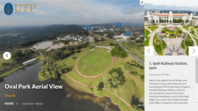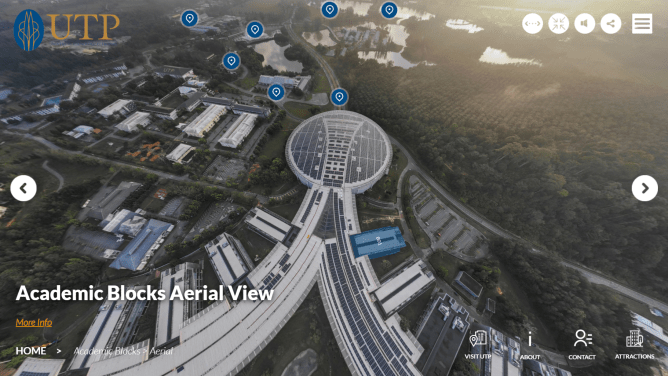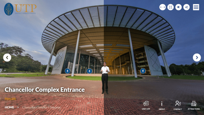 Another element that even special is the 360 video opening at the start of UTP’s virtual tour. The dynamic scenes capture glimpses of the university, paired with an inspiring narration of why students should study at UTP. Use your curser or finger to view the campus in 360 degrees!