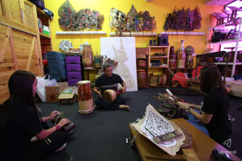 Hailing from Kelantan, Mohd Jufry Yusoff, born 1961, learned the art of shadow puppetry from a dalang named Mamat Semail from 1966 to 1970. He performed as a musician and soon mastered all the instruments used in Wayang. In the early 1980s, he moved to Penang with his uncle and pursued further studies in traditional arts. Since 1983, he has been a cultural artist with the Universiti Sains Malaysia. From 1985, he has been an instructor for the Wayang Kulit Kelantan and at the USM School of Arts. He has been showcasing this traditional performance all across the country, both in the East and on the Peninsula.